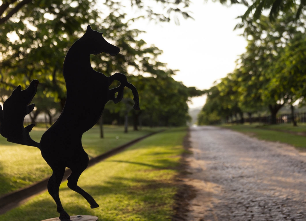 No Haras Larissa, a liberdade do campo se completa com a segurança da vida em condomínio. O ruído e a fugacidade do asfalto dão lugar a vias de terra batida e pedrisco, que convidam a uma redução na velocidade dos veículos.
